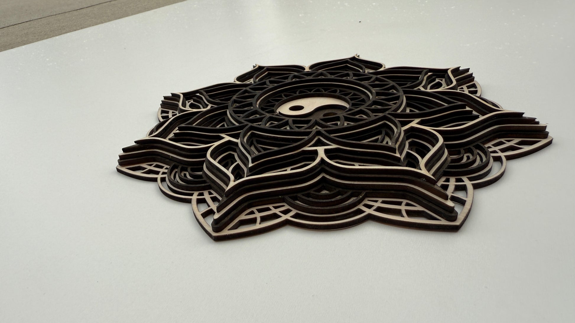 Layered Wooden Yin-Yang Mandala – Symbol of Balance